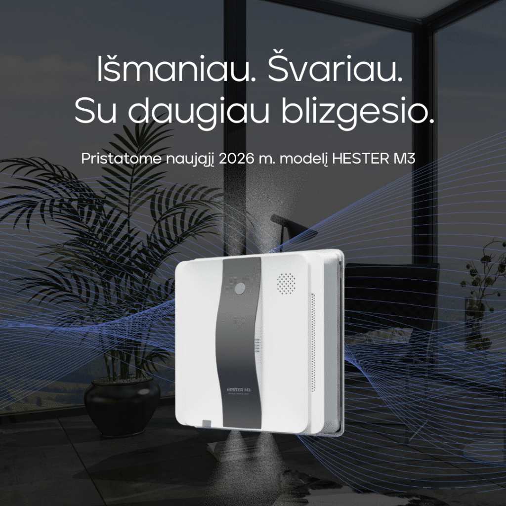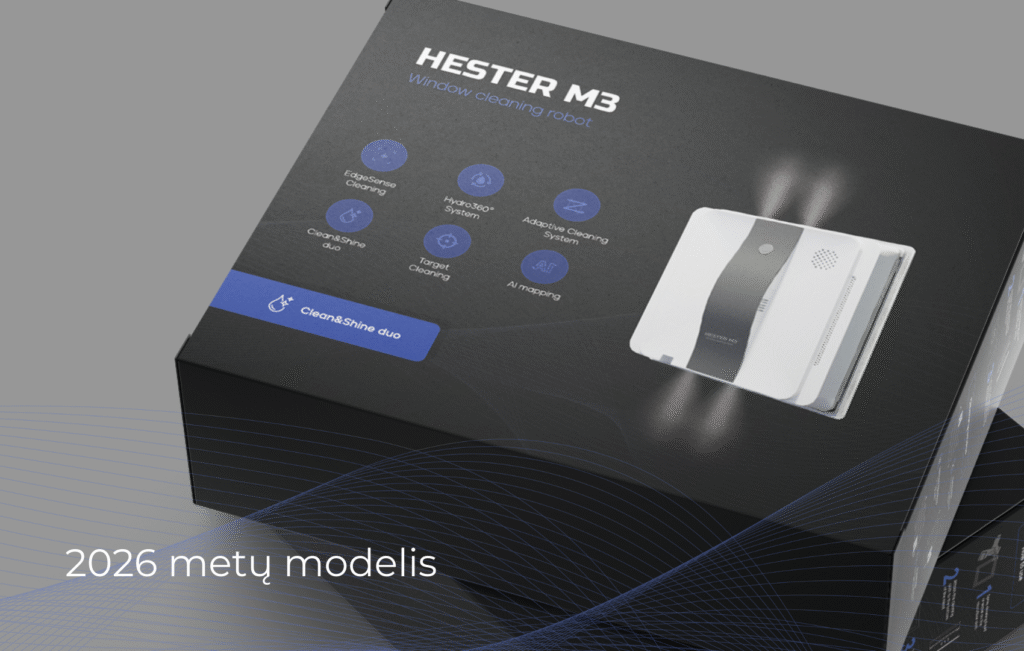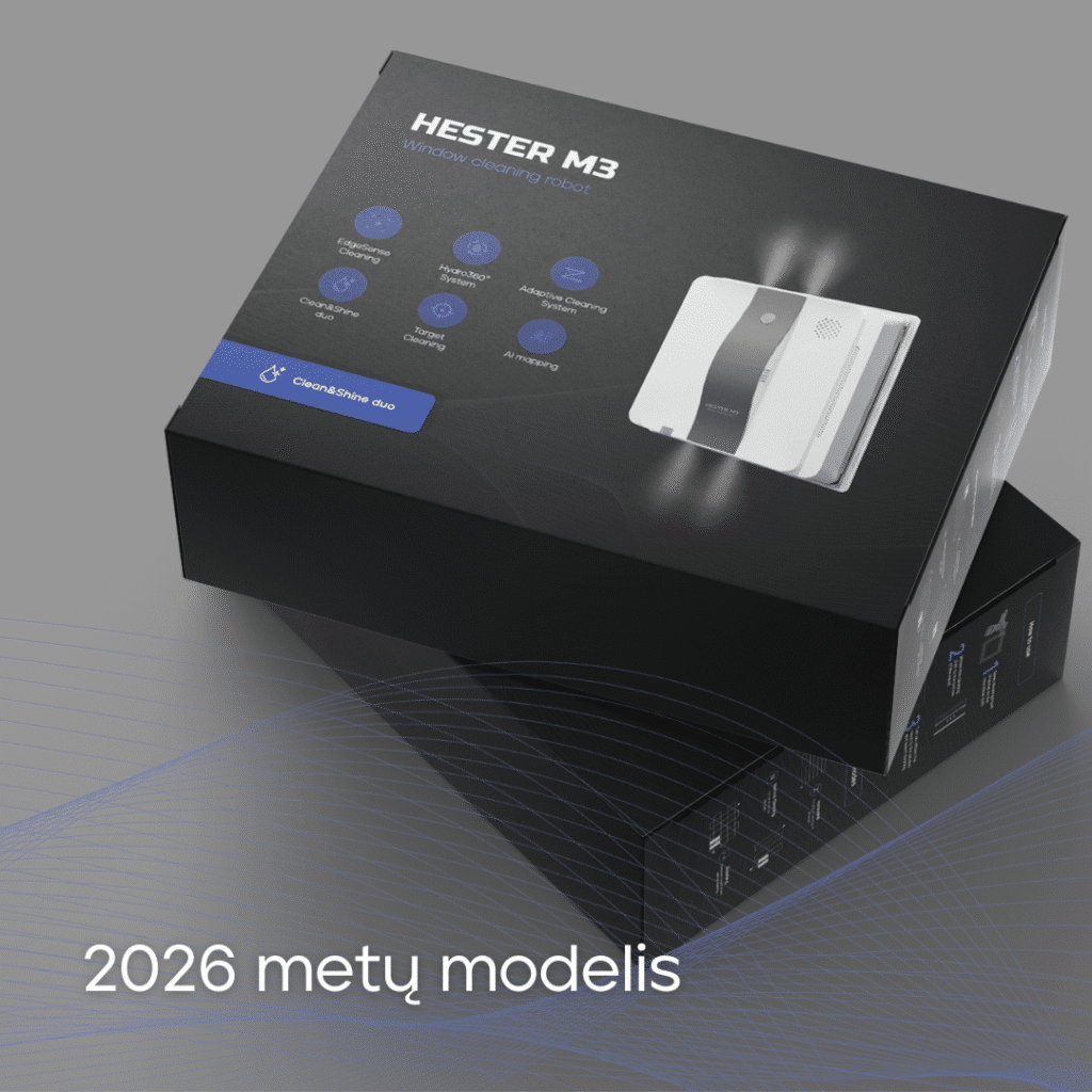Susipažinkite su naujos kartos langų valymo robotu – 2026 m. modeliu HESTER M3. Galingesnis, išmanesnis ir tikslesnis nei bet kada anksčiau.